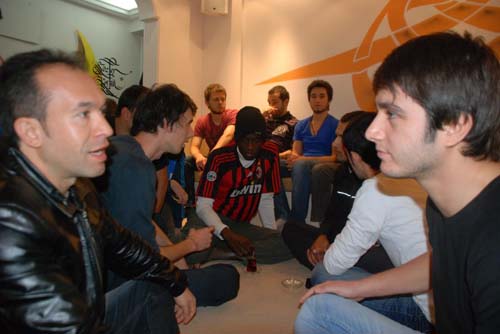 üzerlerine biraz saygı yazılı tişörtler giyen grup burada halkın bankası halkın sanatçısına sahip çık.
